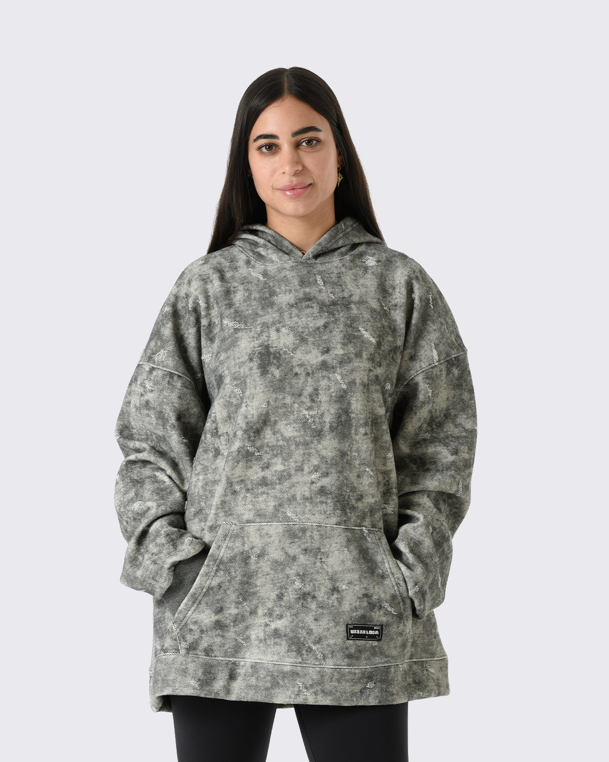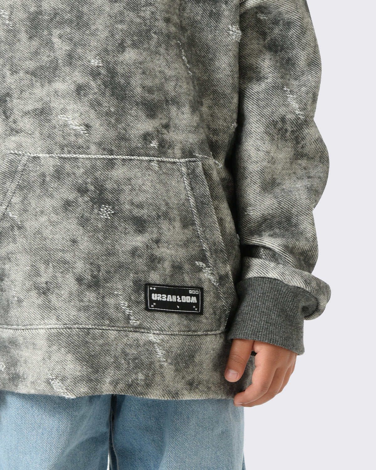 Crafted with an oversized, relaxed fit from premium, heavy-weight cotton, this hoodie is built for substantial warmth and a luxurious, structured drape. The signature feature is the unique Acid Fade finish, which creates an irregular, striking marbled pattern across the fabric, ensuring that every piece is distinct.
