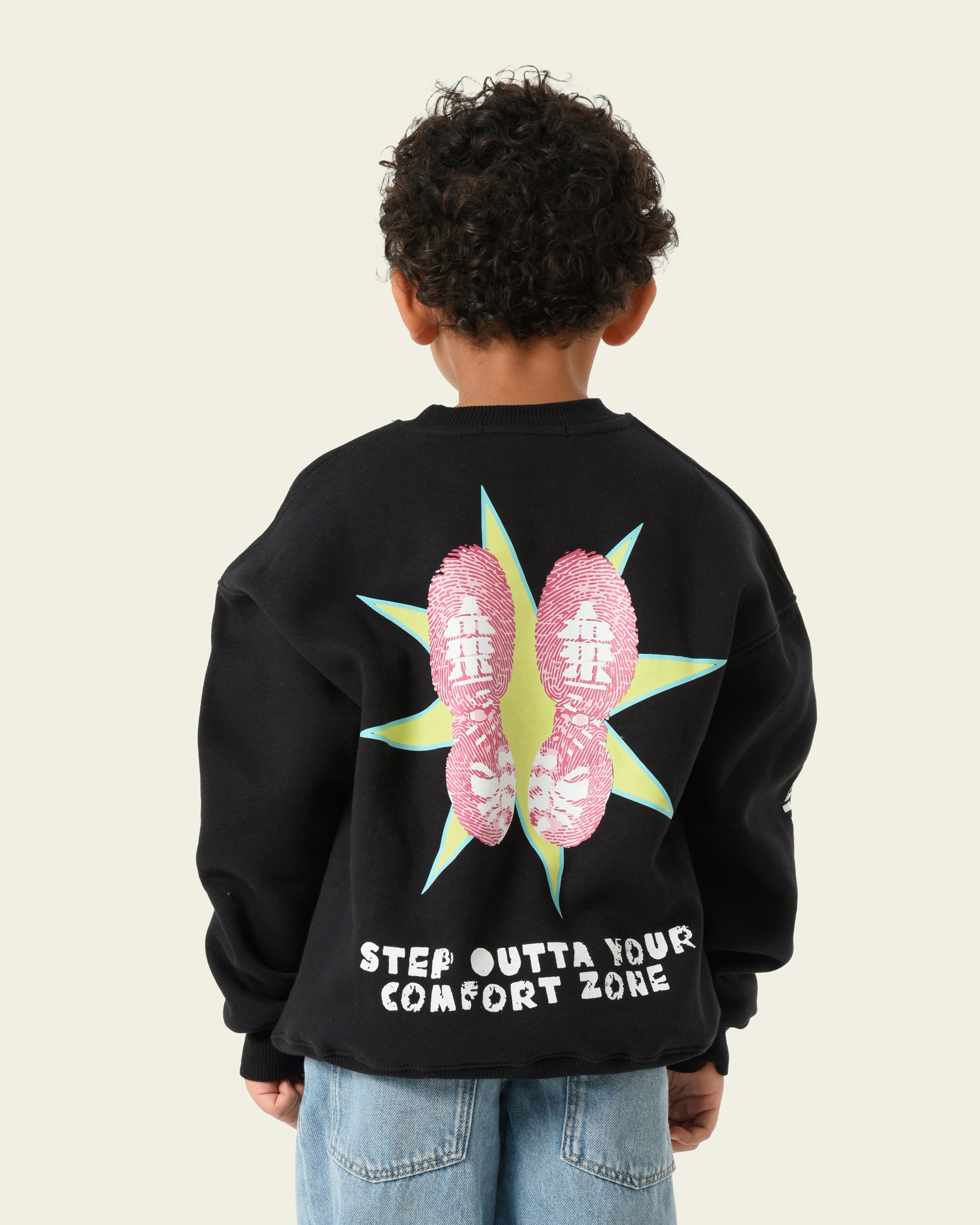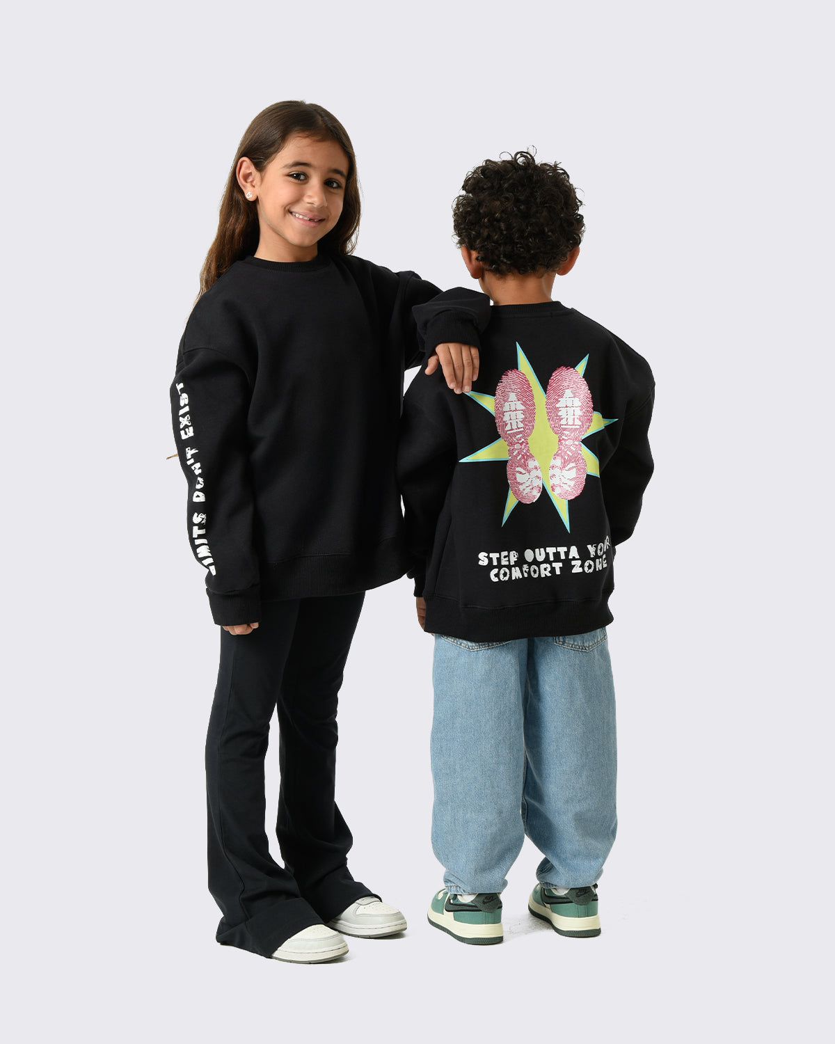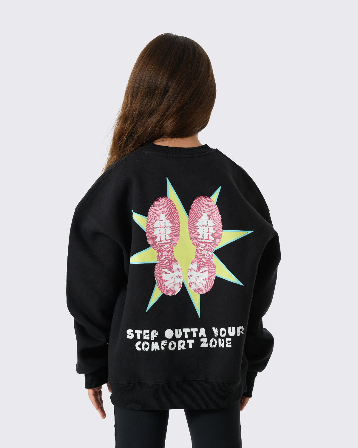 Crafted from heavy melton fleece, this crewneck delivers a premium weight and soft interior feel for lasting warmth and comfort. Designed with an assertive edge, it features bold typography on the sleeve reading “LIMITS DON’T EXIST” and a striking back graphic that reminds you to “STEP OUTTA YOUR COMFORT ZONE.” Every detail reflects energy, ambition, and a fearless attitude.