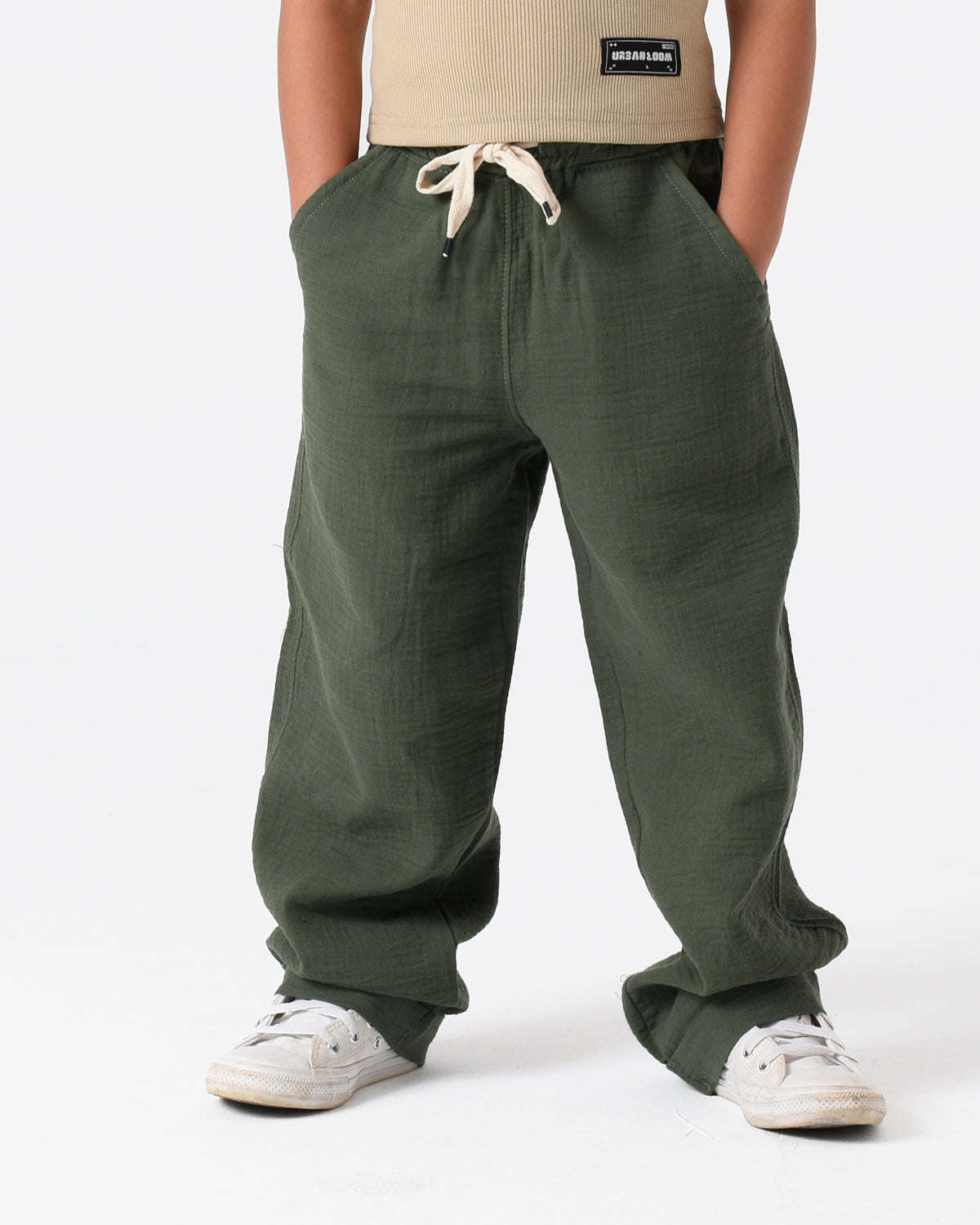 Effortlessly cool and easy to wear, the Coastline Pant is a unisex essential made from breathable crinkle fabric that mimics linen. With a relaxed fit and cuffed hems, these pants are ideal for everyday summer wear. The elasticated waist adds comfort, while the Urban Loom label on the back pocket brings a subtle branded touch.