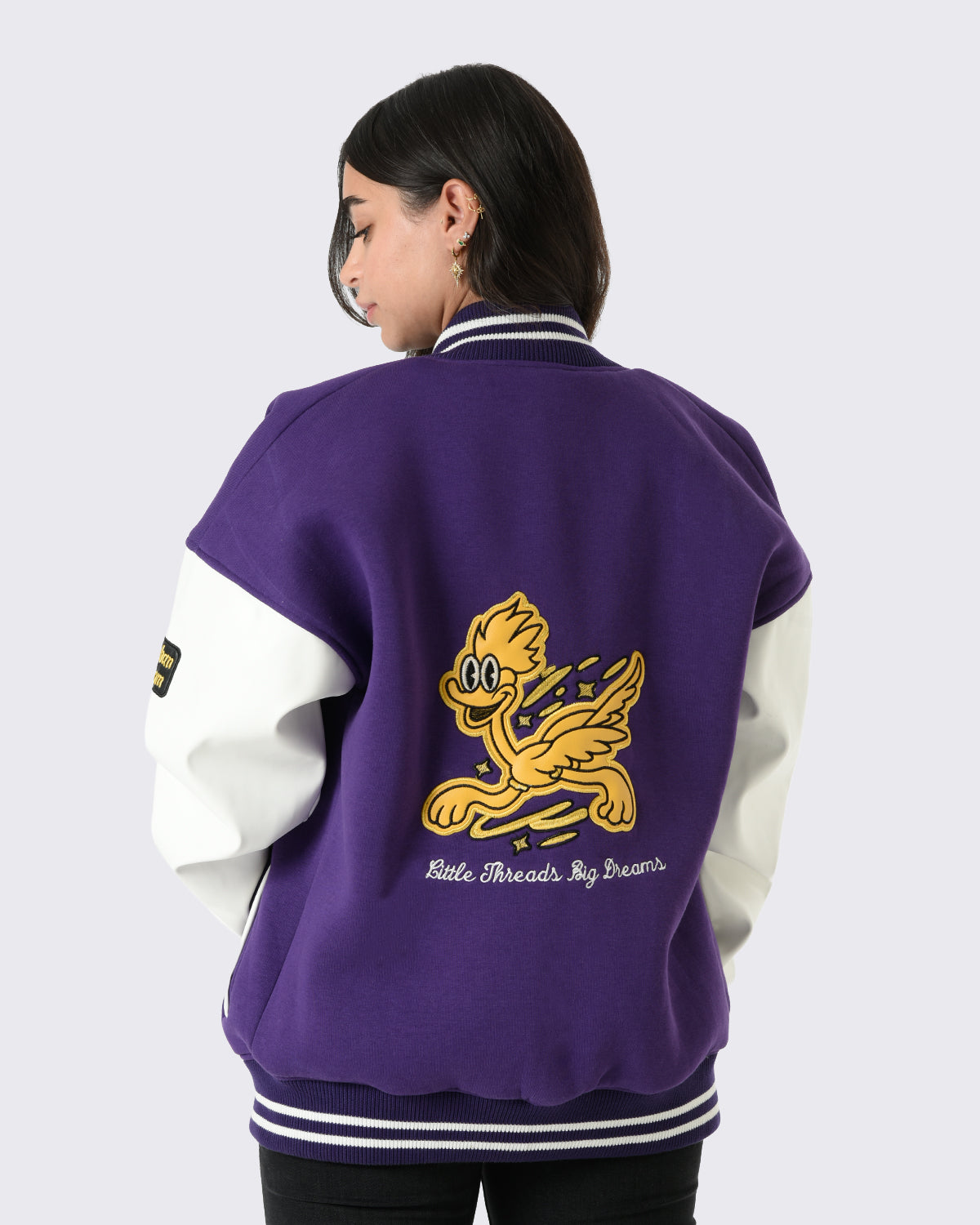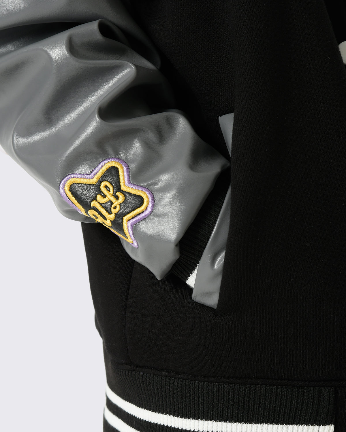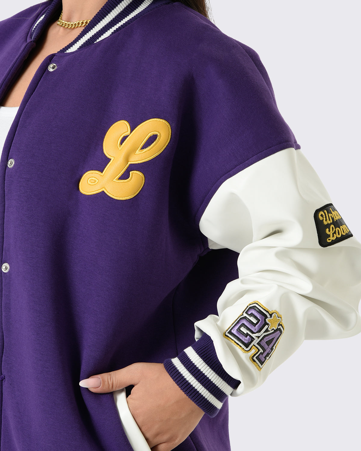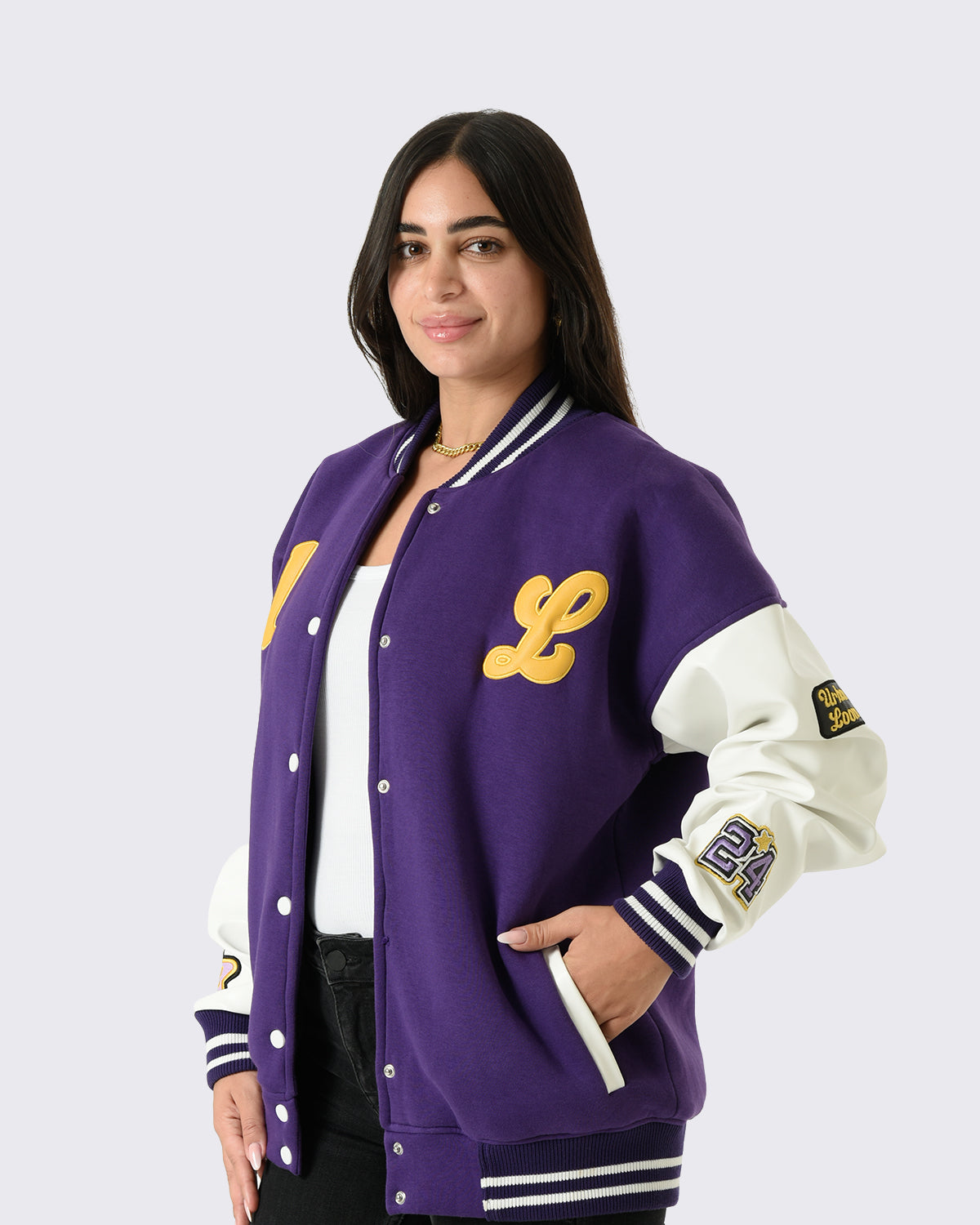 This iconic jacket is constructed for supreme comfort and standout style, combining two structured materials: a heavy, durable Melton Fleece body and high-quality Faux Leather sleeves. This construction provides the classic, substantial structure of a collegiate jacket with practical durability and warmth.