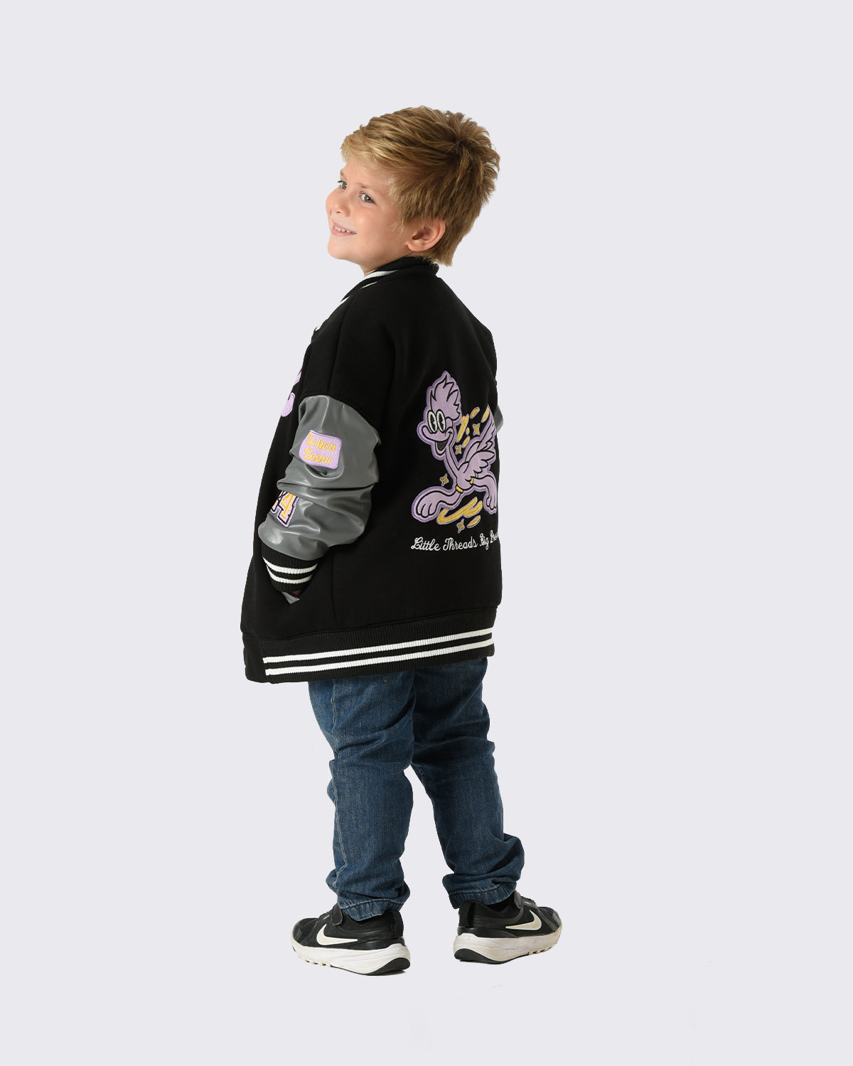 Combining unmatched material quality with a bold, playful graphic, The Loom Leather Jacket is a limited-edition piece designed for young leaders who stand out from the crowd.